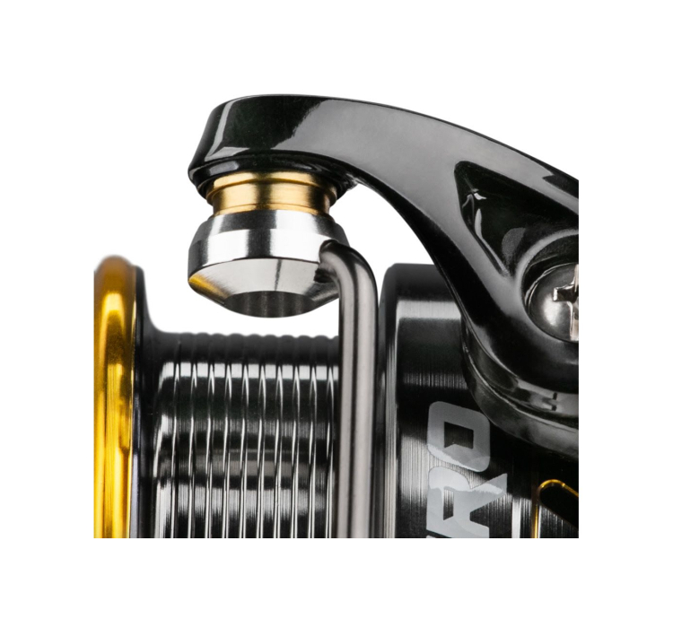 Применение 7 шарикоподшипников и одного роликового подшипника обеспечивает мягкое вращение всех деталей и предотвращает люфты при интенсивном использовании. Облегчённая металлическая шпуля оснащена инновационной технологией, существенно снижающей её массу и улучшающей баланс. Точёная металлическая ручка, вкручиваемая прямо в главный механизм, и эргономичный Т-образный кноб гарантируют комфортное и стабильное управление, даже на длительной рыбалке.