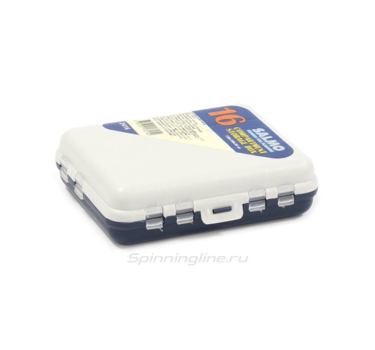 Коробка Salmo 2416 имеет бело-синий дизайн, который выглядит стильно и практично. Белый цвет позволяет легко находить коробку в сумке или ящике, а синий цвет добавляет ей привлекательности.
