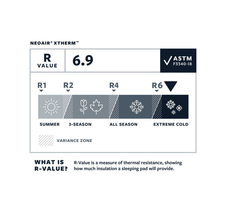 Произведенный в США, коврик спроектирован с высочайшим показателем теплоизоляции R-Value: 6.9, что гарантирует комфорт в самых экстремальных условиях, делая его идеальным снаряжением для четырёхсезонного использования. Это абсолютный лидер на рынке в соотношении вес/теплоизоляция.