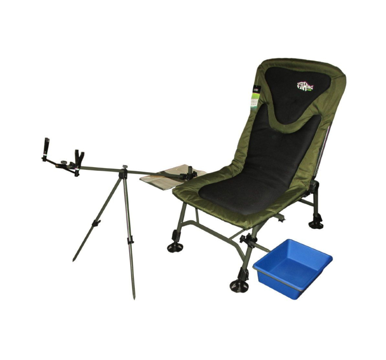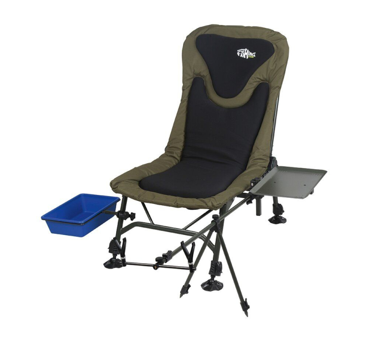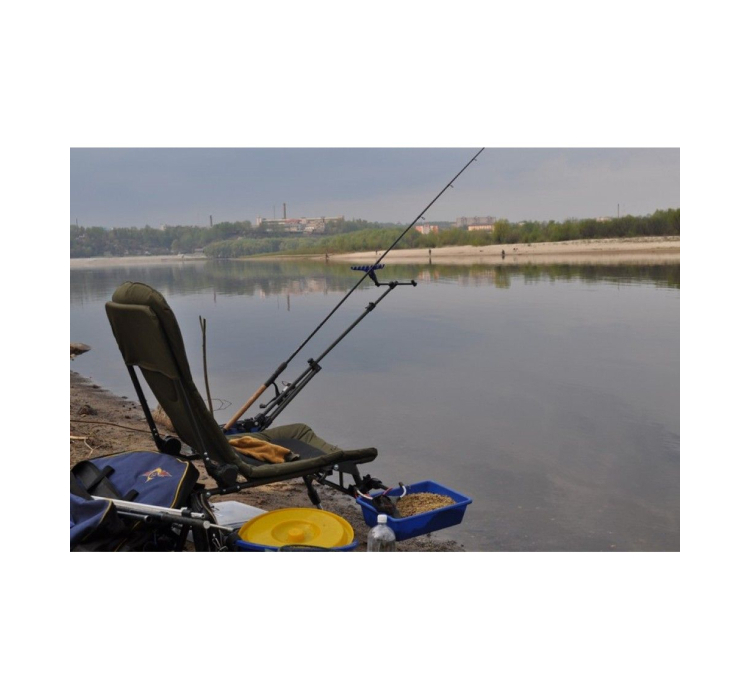 Это фидерное кресло оснащено столиком, который идеально подходит для размещения предметов личного пользования. Держатель для удочек и таз для прикормки делают кресло еще более удобным и функциональным для рыбака любого уровня.