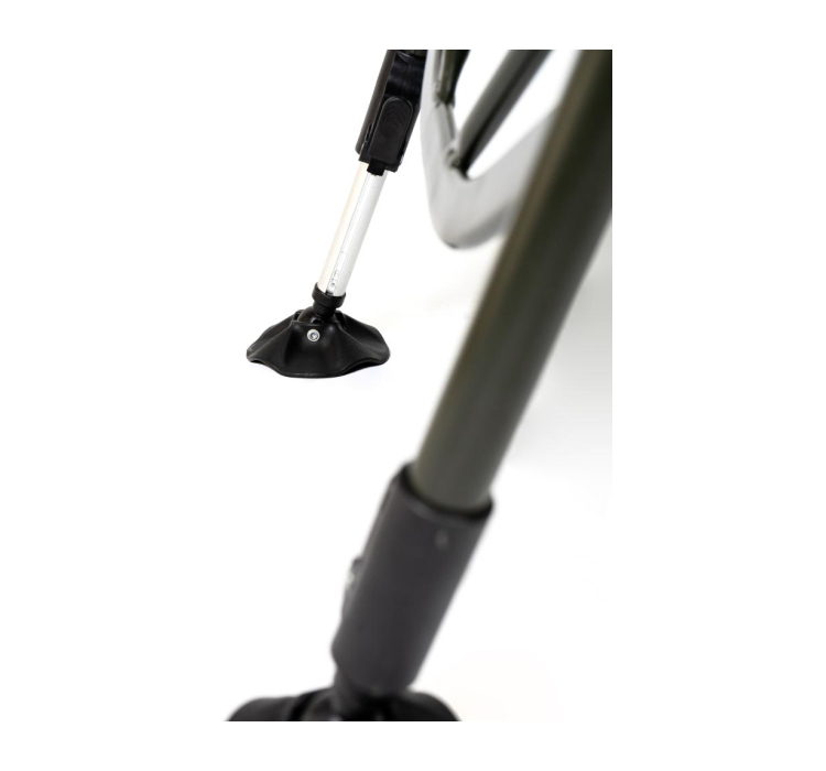 Увеличенные по площади ножки (9 см пятаки) обеспечивают надежную поддержку и предотвращают проваливание в мягкий грунт или песок. При этом высота ножек регулируема, позволяя стабилизировать кресло на неровных поверхностях.