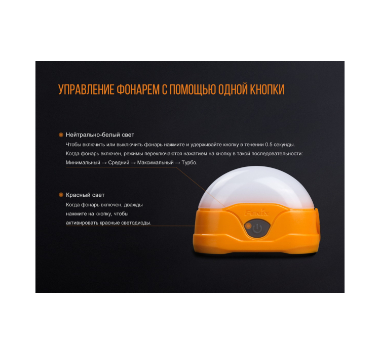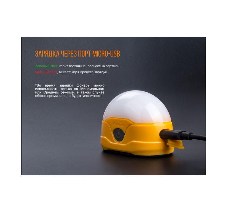 Оснащенный встроенным перезаряжаемым аккумулятором, который можно легко зарядить с помощью кабеля micro USB, этот кемпинговый фонарь предназначен для удобства и многократного использования. Бренд Fenix, известный своим исключительным качеством, гарантирует, что у вас будет надежный источник света для любой кемпинговой ситуации.