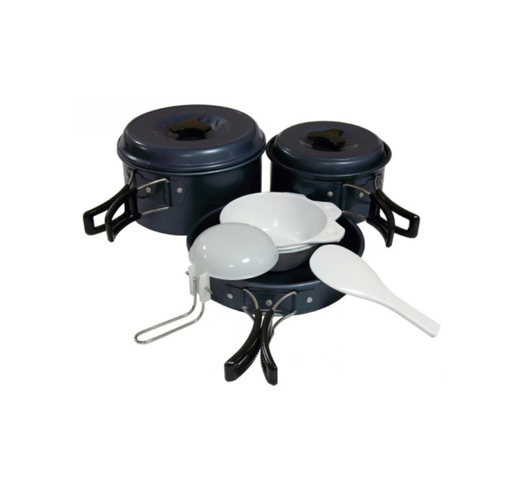 Набор выполнен из легкого и прочного алюминия с антипригарным покрытием, что обеспечивает равномерное приготовление пищи. Размеры в сложенном виде составляют 20 х 20 х 15 см, что делает набор удобным для переноски. В комплекте также имеется губка для мойки посуды. С этим набором вы легко приготовите вкусные блюда на свежем воздухе и сохраните чистоту посуды в походе.