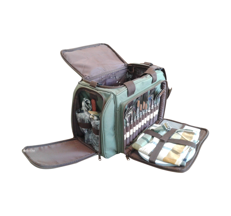 В составе набора находятся все необходимые элементы: 4 тарелки, 4 бокала, 4 ложки, 4 вилки, 4 ножа, а также хлебный нож, открывалка, контейнер для соли и перца, дощечка для нарезки, салфетки и тканевая скатерть. Дополнительно, в набор включены утонченные аксессуары, которые делают пикник по-настоящему незабываемым.