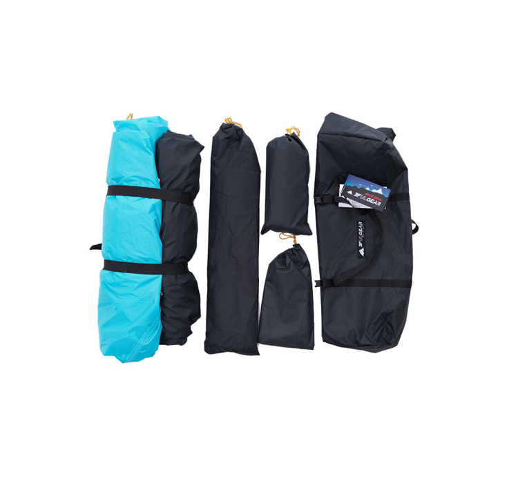 Внешний тент палатки изготовлен из 15D нейлона с силиконовым покрытием, что обеспечивает водонепроницаемость 5000 мм водяного столба. Внутренний тент выполнен из 210T полиэфирной тафты, которая обеспечивает отличную воздухопроницаемость.
