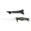 Рукоятка из стекловолокна с покрытием Gator обеспечивает надежный хват даже во влажных условиях. Упор для большого пальца и защита на нижней части рукоятки предотвращают выскальзывание ножа из руки. В комплекте идут практичные ножны с точилкой, что позволяет поддерживать остроту клинка.