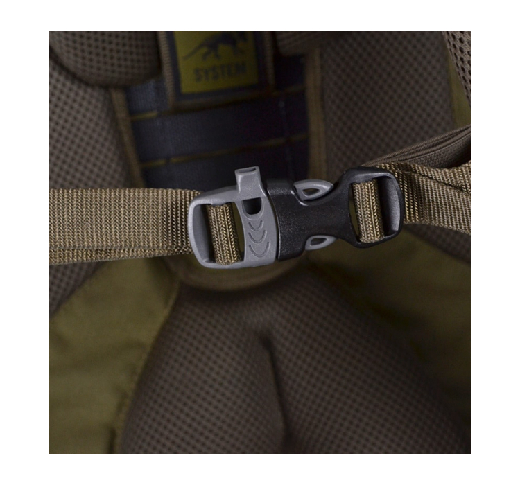 Внешняя система креплений MOLLE позволяет легко прикрепить дополнительное снаряжение, а боковые компрессионные ремни с фастексами обеспечивают компактность груза. Нагрудный ремень со свистком обеспечивает стабильность и безопасность в походных условиях.