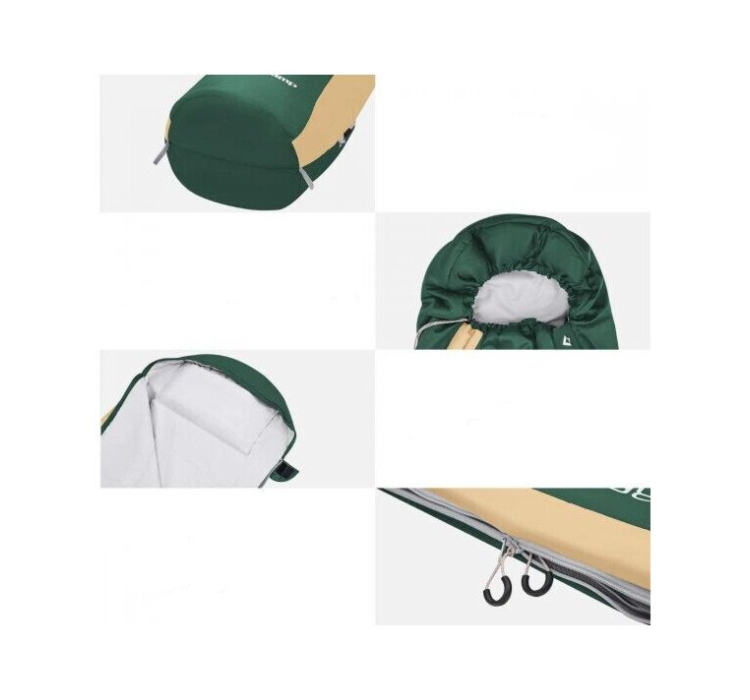 Внешняя часть спального мешка изготовлена из прочной 210T полиэстеровой ткани с алмазным переплетением, что гарантирует надежность и долговечность изделия. Внутренний материал выполнен из мягкой и приятной на ощупь 240T полиэстеровой ткани, создавая комфортные условия для сна.