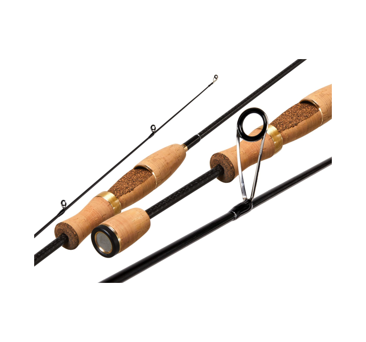 Пробковый держак спиннинга обеспечивает комфорт во время рыбалки. Он не скользит в руке, даже если она мокрая.