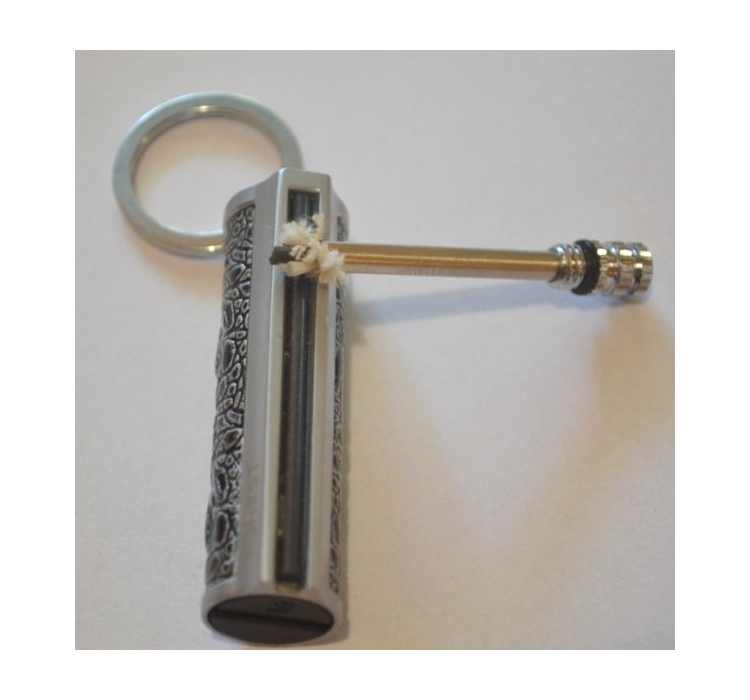 - Компактність і легкість: завдяки невеликим розмірам і вазі, кресало-брелок зручно носити з собою, прикріпивши до ключів або поясу.