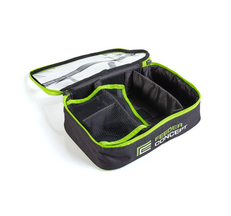 З габаритами 31x21x7.5 см, чохол Feeder Concept 08 ідеально підходить для акуратного розміщення годівниць, волосіней, монтажів та інших аксесуарів. Усередині ви знайдете продумане відділення з перегородками для різнорозмірних секцій, що забезпечить зручну організацію та легкий доступ до ваших снастей.