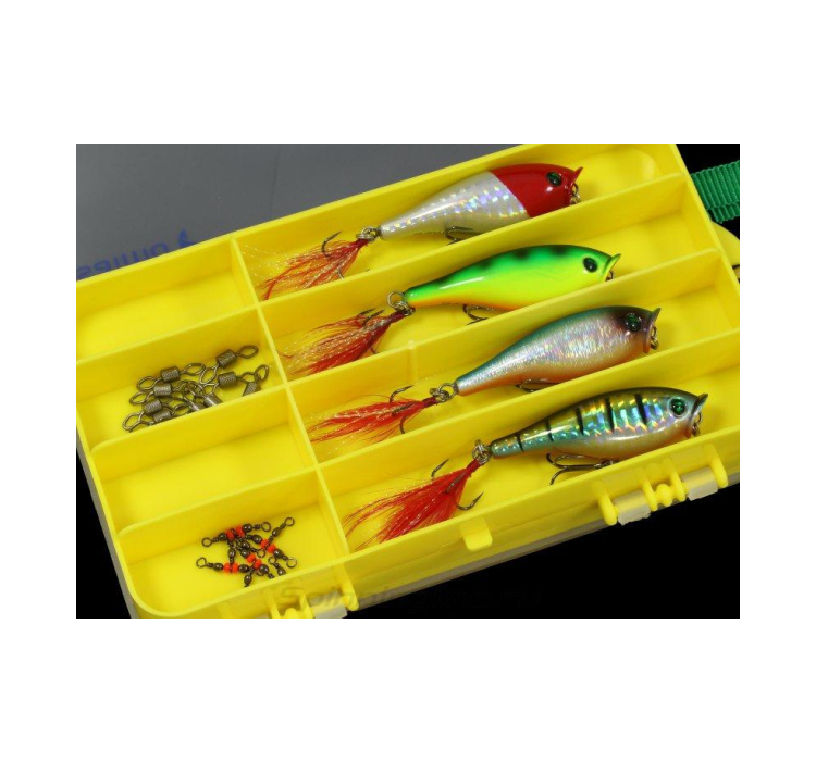Коробка Salmo 83 - це незамінний аксесуар для будь-якого рибалки, який цінує порядок і зручність. Ця двостороння коробка оснащена 13 відсіками, де ви можете розмістити всі необхідні рибальські приналежності, такі як гачки, грузила, приманки та багато іншого.