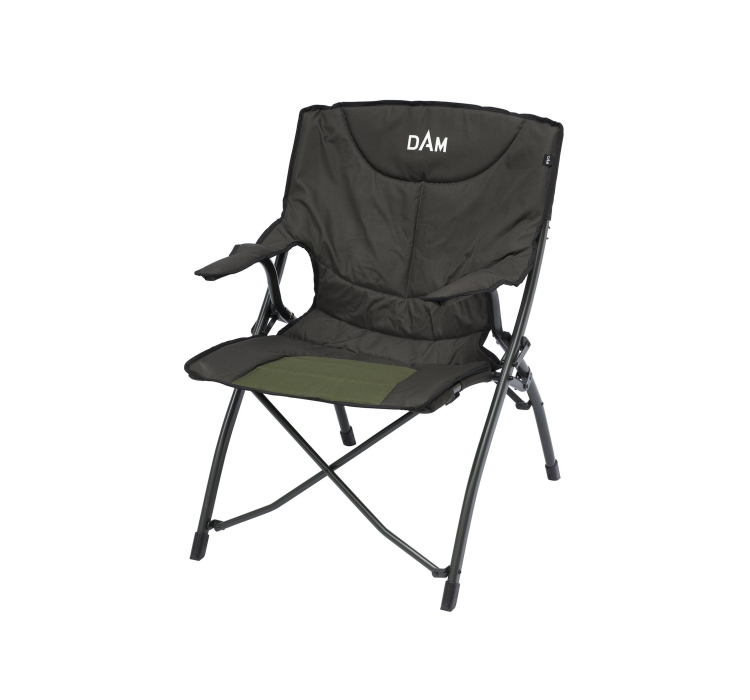 Крісло DAM Foldable Chair DLX Steel виготовлено з міцної сталевої рами, що гарантує його довговічність і стійкість. Воно здатне витримувати максимальне навантаження до 130 кг. Крісло має темно-зелений колір, який чудово вписується в природний ландшафт.
