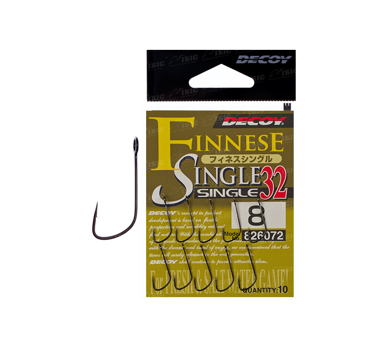 Гачок Decoy Single 32 - це високоякісний одинарний гачок, розроблений у співпраці з вітчизняними рибалками-спортсменами, які вважаються одними з кращих спінінгістів у світі. Цей гачок спеціально призначений для оснащення силіконових приманок при лові хижої риби.