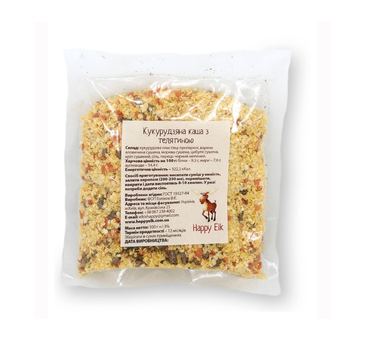 Кукурудзяна каша Happy Elk з телятиною: Насолоджуйтеся ситним обідом у будь-яких умовах