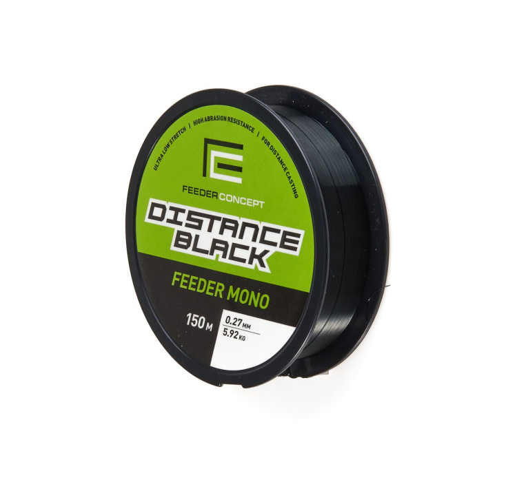 Feeder Concept Distance Black - монофільна волосінь, створена професіоналами у спортивній риболовлі. Лінійка розроблялася спеціально для фідерної ловлі. Головна відмінність цієї серії в мінімальній розтяжності. Завдяки цій властивості волосінь максимально інформативна навіть при лові на дальніх дистанціях.