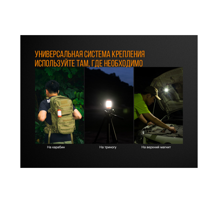 Зручність кріплення і розміщення забезпечується завдяки наявності металевої петлі, вбудованого магніту і різьби для штатива. Можна легко розмістити ліхтар на гілці, прикріпити до рюкзака або поставити на будь-яку рівну поверхню. Завдяки компактним розмірам 97 мм в довжину і 49 мм в діаметрі і вазі всього 116 г ліхтар ідеально підходить для походів.