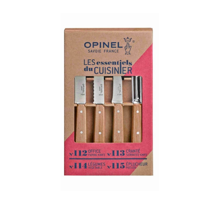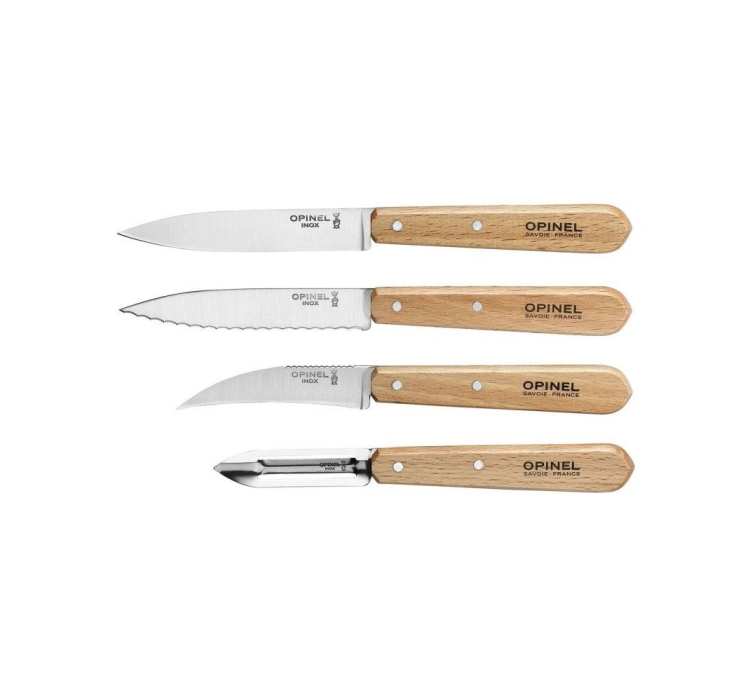 Opinel Paring Knife №112 - багатофункціональний кухонний ніж для чищення, нарізання, подрібнення овочів, фруктів, м'яса тощо. Довжина леза 63,5 мм. Opinel Serrated Knife №113 - версія ножа Paring з серейторним заточуванням. Довжина леза 100 мм. Opinel Vegetable Knife №114 - ніж з вигнутим лезом та серейтором на обусі для чищення овочів та фруктів. Довжина леза 76 мм. Opinel Peeler Knife №115 - цей ніж з особливою формою леза призначений для швидкого та ефективного очищення фруктів та овочів. Довжина леза 101 мм.