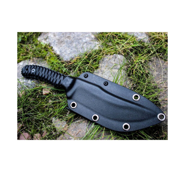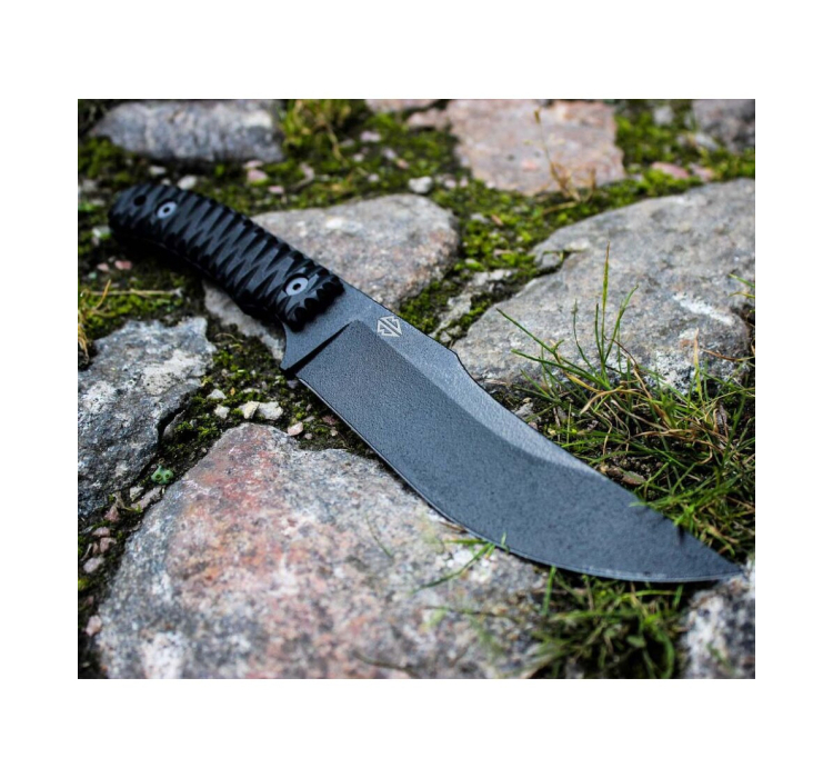 Ключові характеристики: 24,3 см загальної довжини та 100 мм довжини рукояті для зручного хвата та простоти керування. Чорний колір клинка та рукояті підкреслює його бойовий стиль. Клинок із марки вуглецевої сталі заточений прямою заточкою, надаючи вам гостроту та надійність за будь-яких обставин. Збільшена товщина в 5 мм гарантує високу стійкість проти навантажень та зносу. Форма клинка drop-point забезпечує зручність при різанні та проникненні.