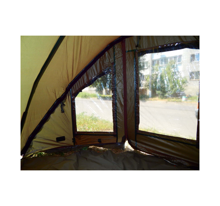 Передня частина намету оснащена двома вікнами із захисними сітками проти комах та опціональними прозорими дверима. Це забезпечує чудову вентиляцію та освітлення всередині намету.