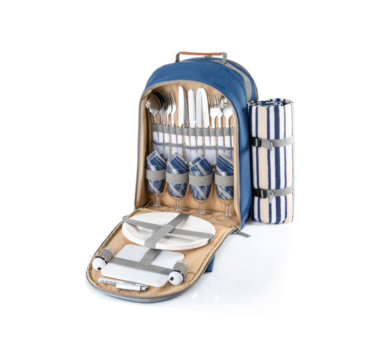 Досліджуйте властивості універсальності та комфорту з мультифункціональним пікнічним набором "Easy go" - вашим надійним супутником для ідеальних виходів на природу. Ця система 3-в-1 об'єднує в собі ізотермічну сумку об'ємом 15 літрів, флісовий килимок для пікніка розміром 120x135 см та комплект посуду та приборів для комфортного відпочинку 4 осіб. Представлений в елегантному синьому кольорі, рюкзак втілює в собі зручність і стиль.