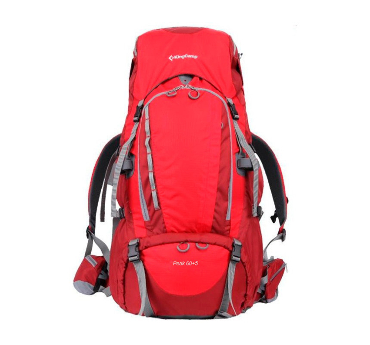 Секційна система спини з м'якими анатомічними вставками-подушками забезпечує необхідну вентиляцію верхньої частини торсу, оскільки виконана з дихаючого матеріалу, виготовленого за допомогою мембранних технологій. Вона наділена ребрами жорсткості. Туристичний рюкзак KingCamp Peak 60+5 виготовлений з міцної на розрив, зносостійкої та водонепроникної тканини, здатної витримувати механічні та хімічні впливи, а також несприятливі погодні фактори під час тривалих піших переходів.