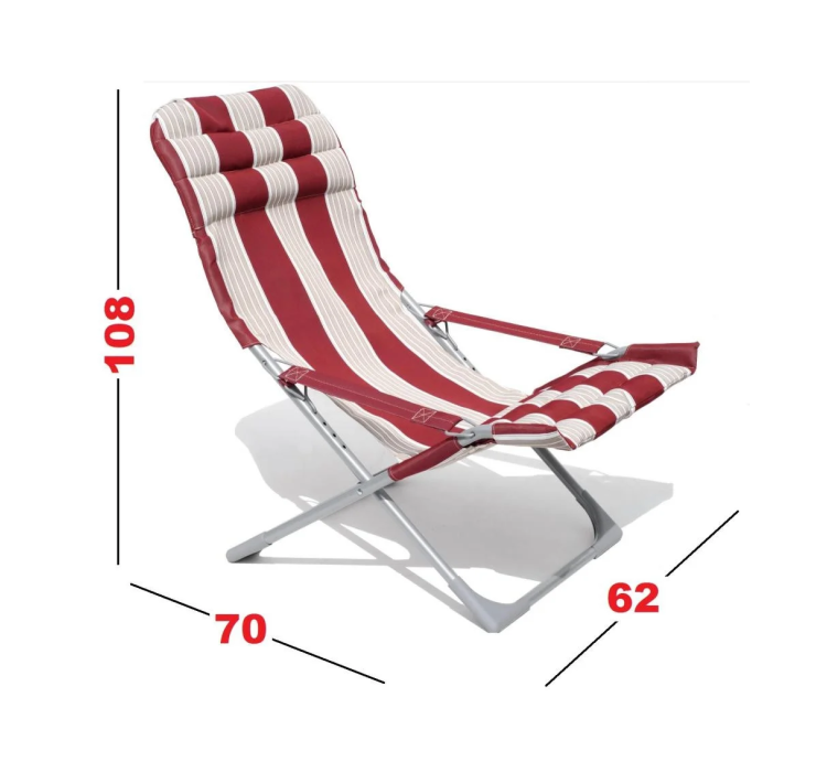 Шезлонг представлений у стильних варіаціях білого, червоного та бежевого кольорів, підкреслюючи ваш індивідуальний смак. Матеріал Оксфорд 600D забезпечує зносостійкість та невибагливість у догляді, а сталева конструкція гарантує стабільність та довговічність.