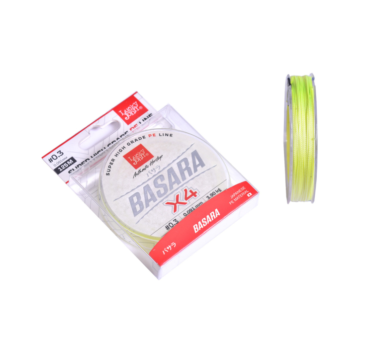Плетений шнур Lucky John Basara - це високоякісний чотирижильний шнур, виготовлений за японською технологією з високомодульного поліетилену. Він вирізняється підвищеною міцністю та зносостійкістю, що робить його ідеальним вибором для рибалок, які цінують надійність та довговічність снастей.