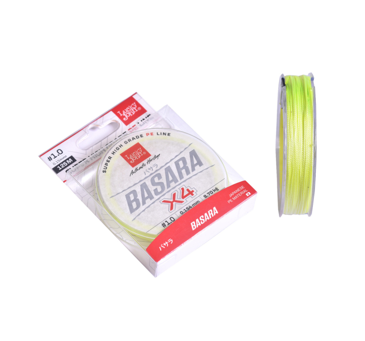 - Міцність: завдяки використанню високоякісного поліетилену, шнур Lucky John Basara витримує високі навантаження та не рветься при виважуванні великої риби.