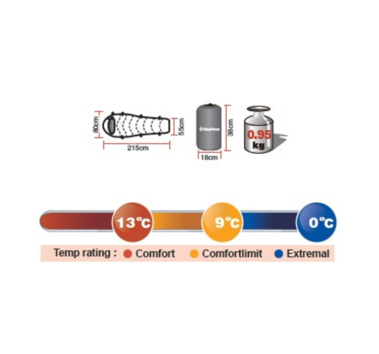 Стабільний і перевірений часом бренд KingCamp гарантує якість і надійність виготовлення. Вага спальника становить 1,2 кг, а його довжина і ширина складають відповідно 215 см і 80 см.