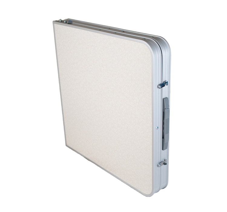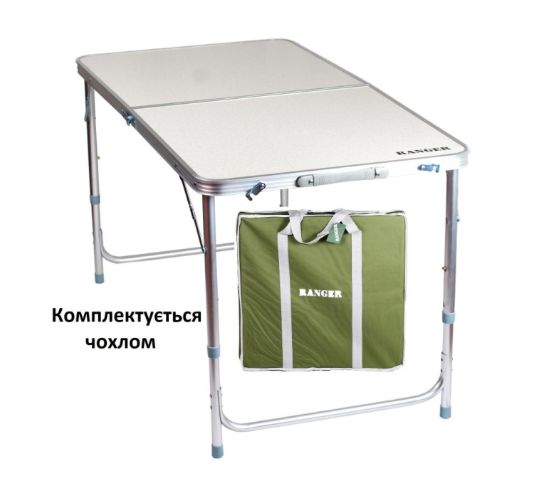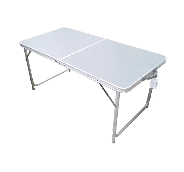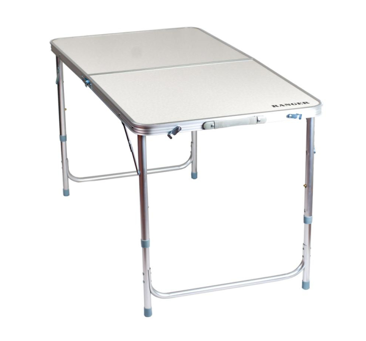 Компактний в складеному вигляді, але досить великий в розкладеному. Стіл Time TA-21408 знайде застосування на відпочинку за містом, на пікніку на дачній ділянці, на рибалці, а також розкладний стіл може стати в нагоді для прийому великої кількості гостей. Місця для зберігання столу потрібно зовсім небагато. Та й в багажнику легкового авто розкладному столу завжди знайдеться місце. Стіл складається навпіл так, що перетворюється в невелику валізку. Стільниця з ламінованого ДВП. Щоб дві половини стільниці надійно трималися, вони скріплені спеціальними гачками. Для того щоб стіл міг витримувати велике навантаження і зберігати цілісність, стільниця зафіксована в алюмінієвому профілі. Легкий, зручний, стійкий стіл ще й регулюється по висоті у трьох положеннях. Завдяки конструкції ніжок, з’єднаних трубкою, стіл не провалюються в грунт. Для більшої зручності транспортування та захисту від пошкоджень, комплектується чохлом.