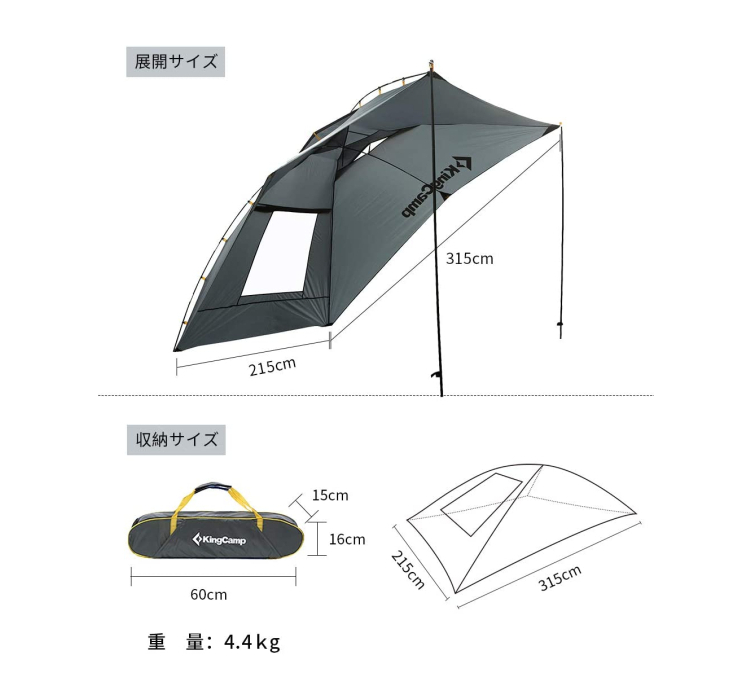 Тент має розміри 315 х 215 см, що дозволяє створити комфортну зону для відпочинку на свіжому повітрі. Ви зможете розмістити під ним усі необхідні меблі та речі, щоб насолоджуватися природою в повній мірі.
