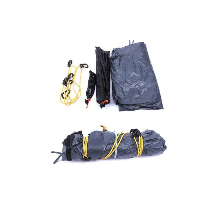 Тент виготовлений з високоякісного матеріалу 210T Polyester Ripstop, який вирізняється своєю водонепроникністю та міцністю. Щільність матеріалу та водостійкість до 1500 мм гарантують, що ви залишитеся сухими навіть у найсильнішу зливу.