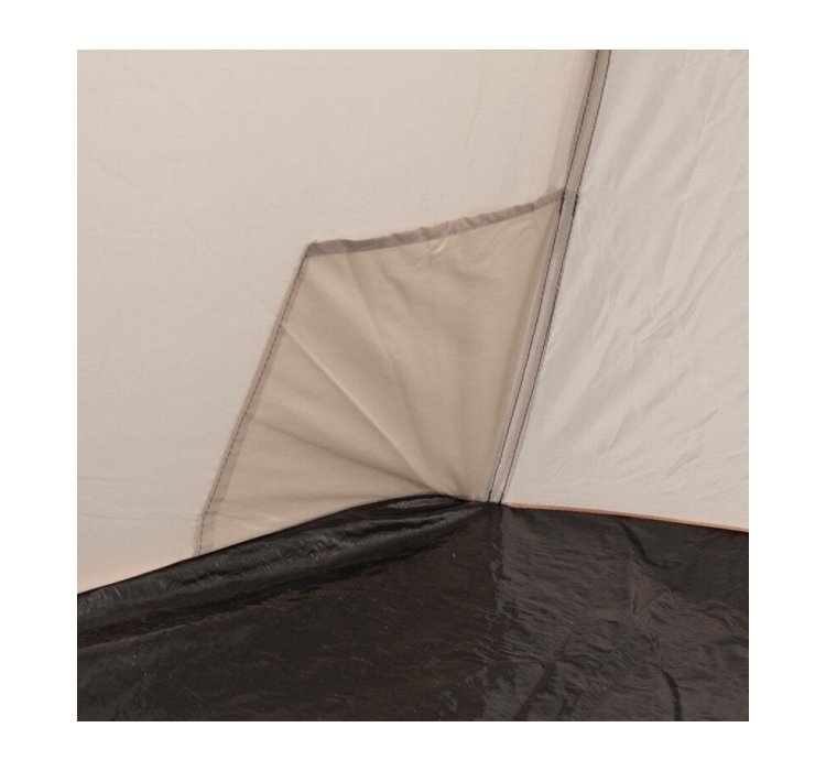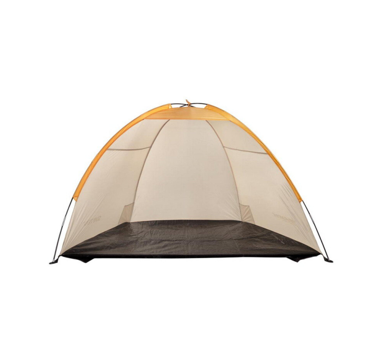 Намет виконаний з високоякісного поліестеру з водонепроникним верхнім шаром, здатним витримати водяний стовп до 300 мм. Армований поліетиленовий пол запобігає проникненню вологи знизу, так що ви зможете насолоджуватися безпроблемним відпочинком незалежно від погоди. Фібергласові дуги забезпечують міцну конструкцію намету, а кишені для фіксації дозволяють надійно закріпити намет в піску, запобігаючи його переміщенню.