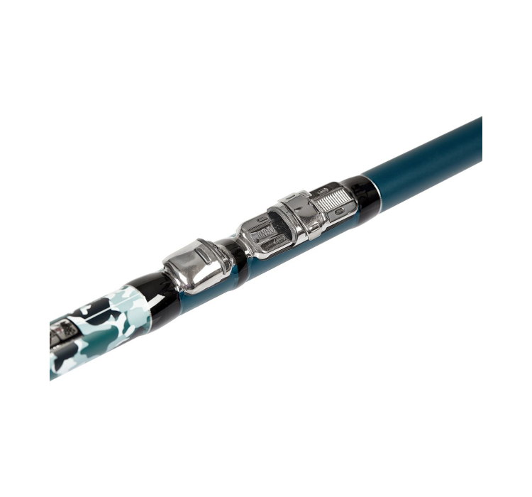 Вудлище оснащене пропускними кільцями з керамічними вставками SiC, які зменшують знос волосіні і забезпечують безперебійну роботу в процесі лову. Полегшений металевий котушкотримач гарантує швидку установку котушки і її надійне збереження під час дії. Рукоятка з протиковзким покриттям забезпечує зручний і надійний хват.