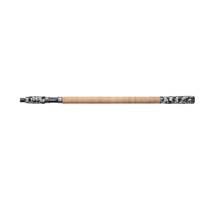 Вудлище має матовий карбоновий бланк, що забезпечує не тільки привабливий зовнішній вигляд, а й стійкість до фізичного впливу. Застосування пропускних кілець з вставками SIC підвищує зносостійкість та зменшує тертя волосіні. Комбінована рукоятка з натуральної пробки та EVA в стилі камуфляж додає естетики та комфорту при тривалому використанні.