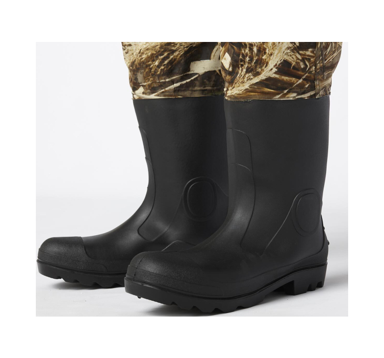 Еластичні чоботи з ПВХ з глибоким протектором забезпечують надійне зчеплення з різними донними поверхнями, забезпечуючи безпечне пересування по слизькому камінню та мулистому дну. Регульовані еластичні підтяжки гарантують ідеальну посадку на тілі, а плоска кишеня з герметичною блискавкою в області грудей додає зручності, дозволяючи зберігати необхідні дрібниці під рукою.
