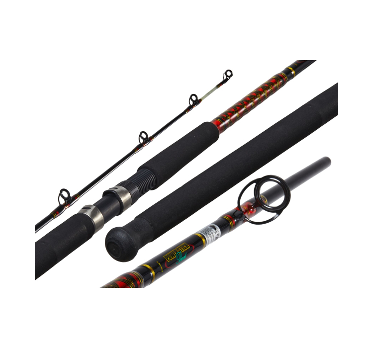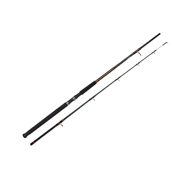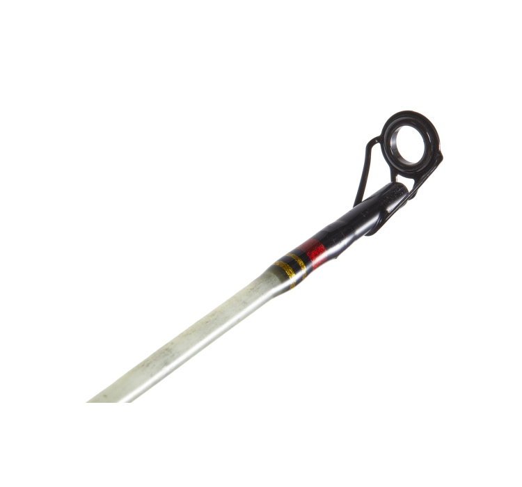Прозрачная вершинка, выполненная из стеклопластика, гарантирует чувствительность и прочность. Удилище оснащено усиленными кольцами SIC, винтовым катушкодержателем для надежной фиксации катушки и строем Regular Fast, оптимально подходящим для троллинга.