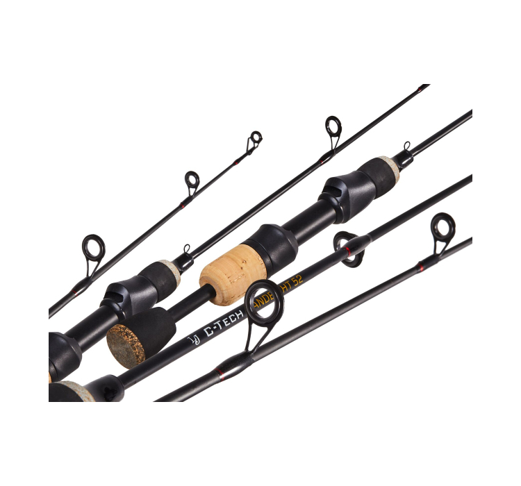 Рукоять удочки выполнена из комбинированного материала пробка+ЭВА, что обеспечивает надежный захват и комфорт при длительной рыбалке. Удочка оснащена графитовым катушкодержателем и керамическими кольцами от LTS, которые гарантируют долговечность и эффективность при вываживании.