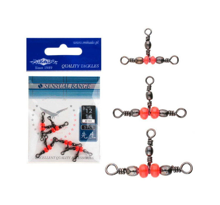 Тройной Вертлюжок Mikado Т-образной Формы с Бусинками №16: Надежность и Эффективность для Рыболовов
